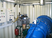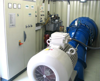 Usually, these hydroelectric power plants are installed in a small building and connected to the water flow using inflow and outflow pipes. This building is fitted with special foundations designed to receive the turbine and generator, and must be constructed according to the specifications of the hydroelectric plant manufacturer.